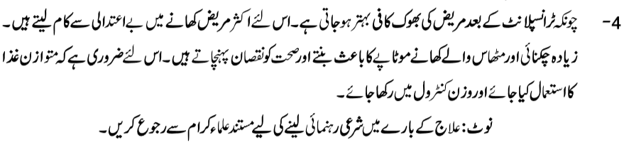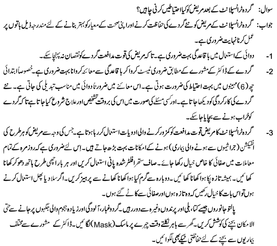 (Patient care after kidney transplant )گردہ ٹرانسپلانٹ کے بعد مریض کی احتیاطیں